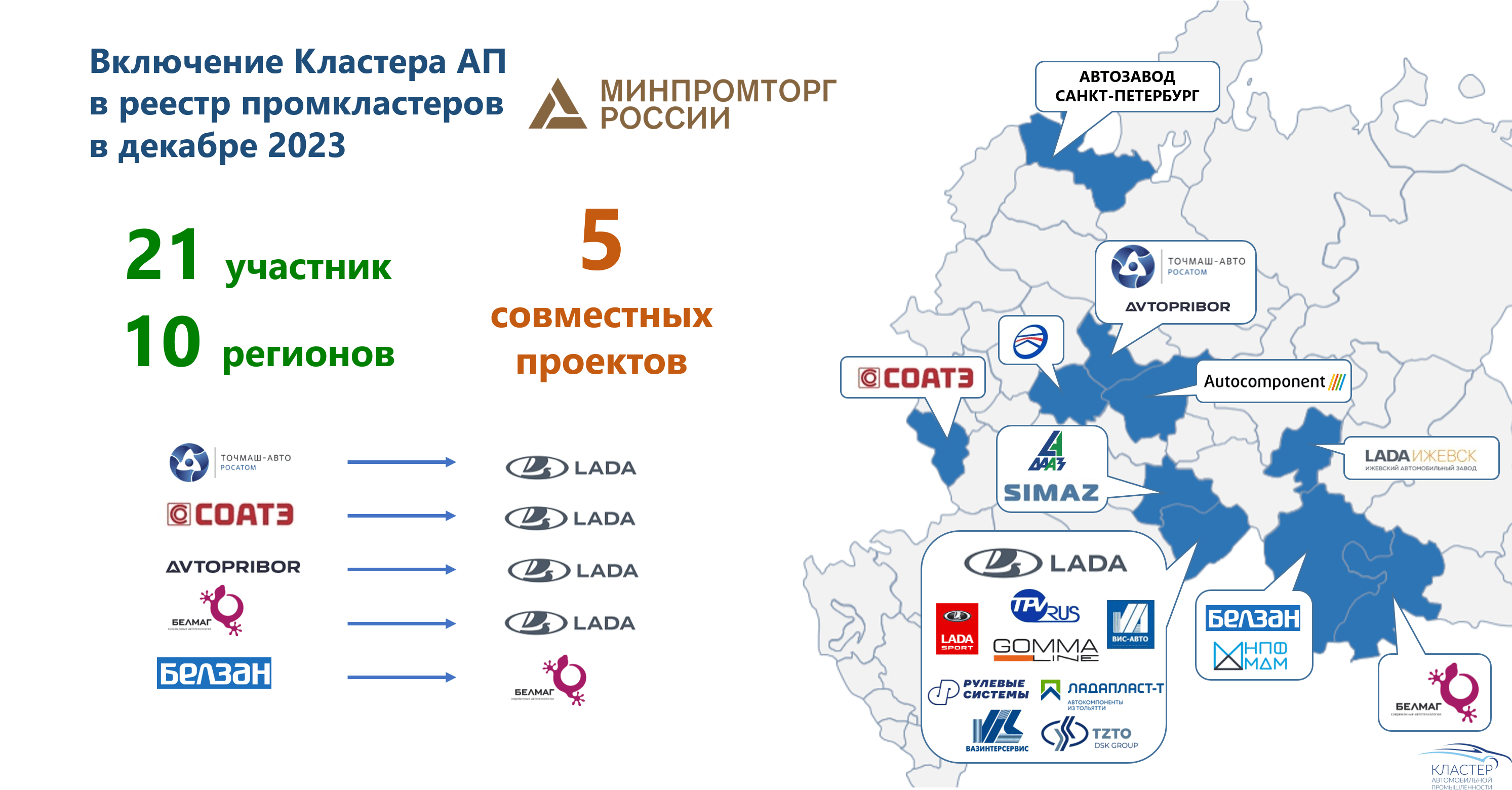Список участников: АО «АВТОВАЗ»,ООО «ЛАДА Ижевск», ООО «ЛАДА Спорт», АО «ПСА ВИС-АВТО», ООО «Автозавод Санкт-Петербург», ООО «Точмаш-авто», ООО «НПК «Автоприбор», АО НПО «Белмаг», ООО «ДААЗ», ООО «СААЗ Комплект», АО «СОАТЭ», ООО «Ладапласт-Т», АО «ВИС», ОАО «ТЗТО», ООО «Гумма лайн», АО «БелЗАН», ООО «СИМАЗ», ООО «ТПВ РУС», ООО «НПФ «МДМ», ООО «Рулевые системы», ЗАО «ПК Автокомпонент Нижний Новгород».